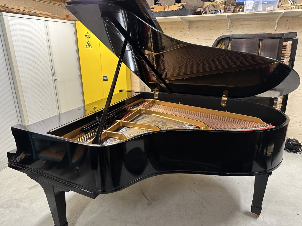 The grand piano has been newly french polished in black, exactly like its original finish.