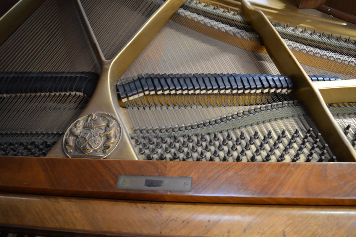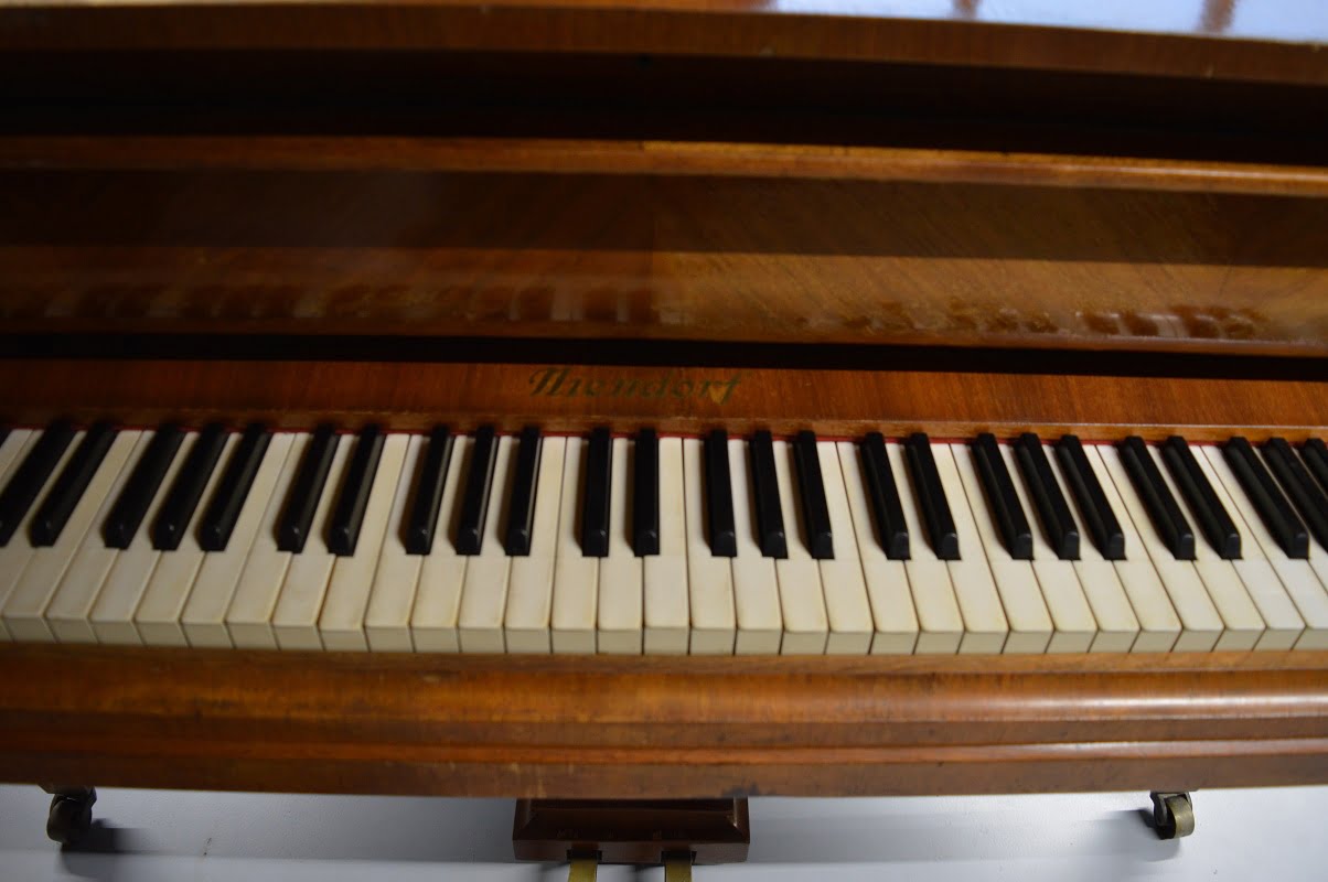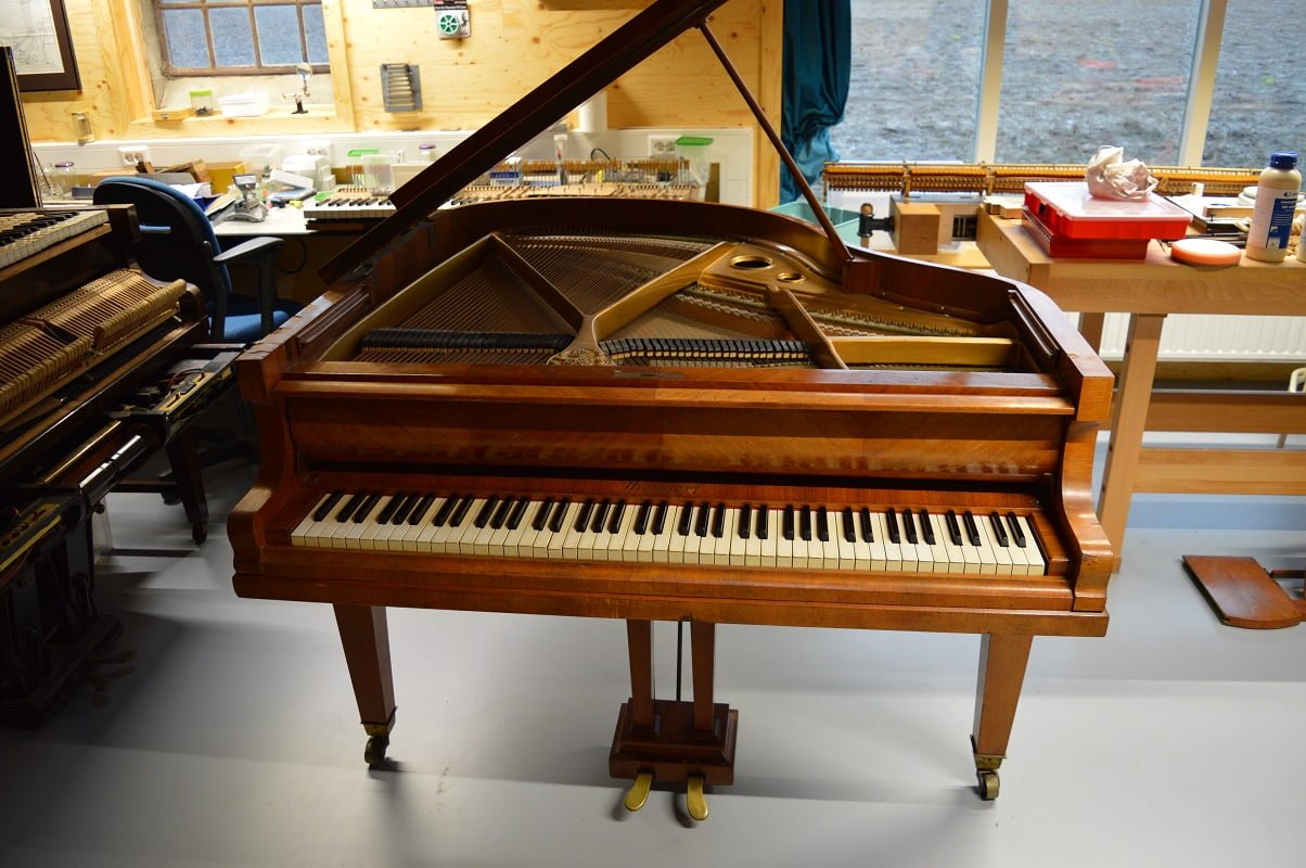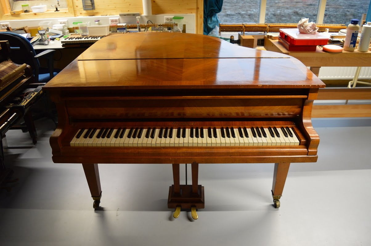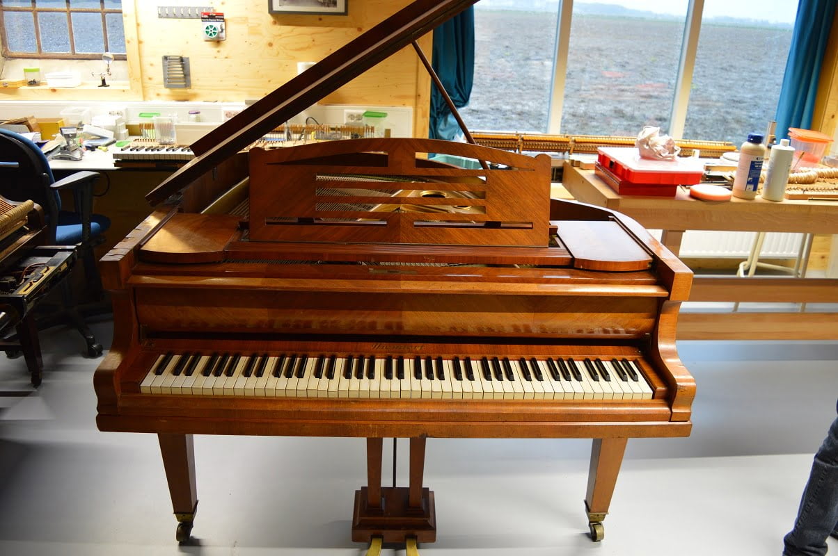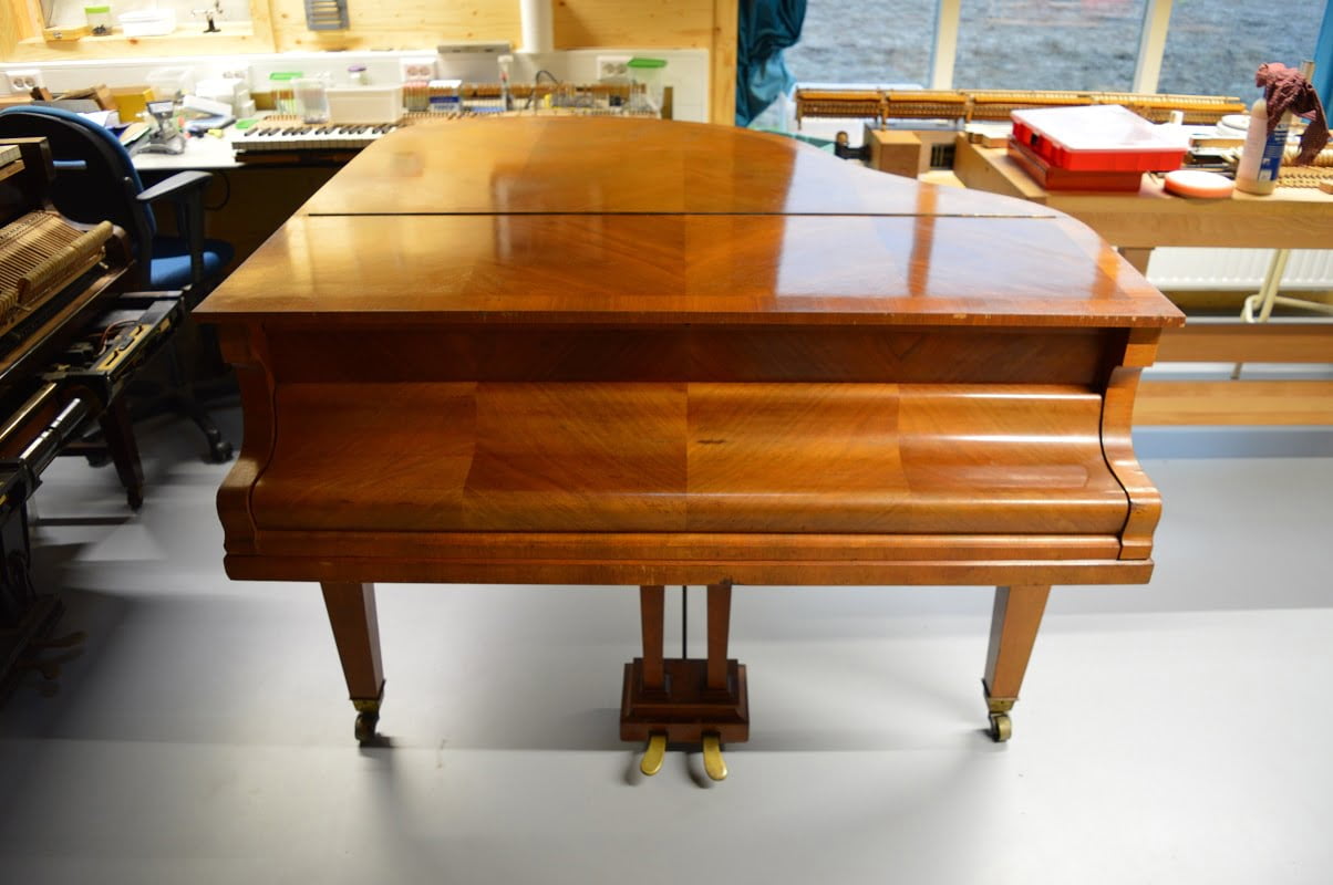 Deze Niendorf vleugel heeft een prachtig kruisvormig ingelegde kast. Gebouwd in 1929.